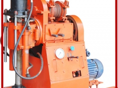 该类钻机采用全液压结构,分主机、泵站、操纵台三部分,主机为分体式结构,可进一步拆卸,便于搬运;主要使用硬质合金、金刚石复合片钻头回转钻进,同时也可配大口径的螺旋钻杆及取芯钻头,适应不同的钻探要求该钻机为动力头型底座式结构全液压钻机,主要用于煤矿井下钻进瓦斯抽(排)放孔、防突孔、注浆灭火孔、煤层注水孔、地质勘探孔及其它工程孔。